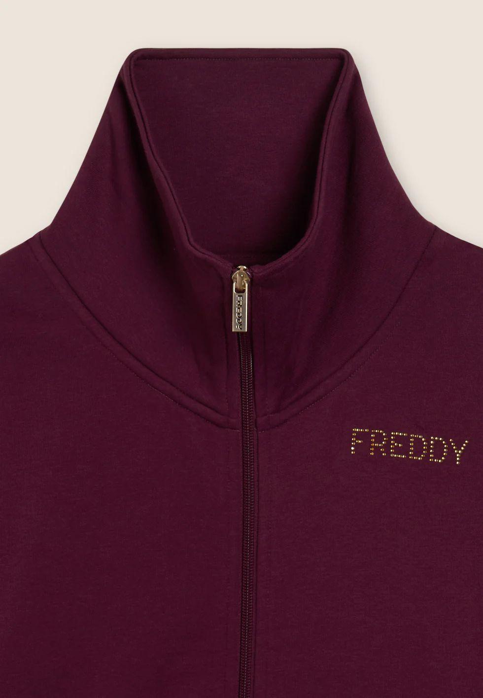 Questa tuta in felpa garzata elasticizzata è pensata per chi cerca il giusto equilibrio tra performance e dettagli femminili. La felpa presenta una chiusura full zip, collo alto, maniche lunghe con polsini e fascia sul fondo. Sulla manica sinistra spicca la scritta “Inspired Heart” composta da strass, che si abbina al logo Freddy decorato su cuore e pantalone. I pantaloni, con gamba dritta e coulisse in vita, sono dotati di tasche alla francese. La felpa invece include tasche a filetto, pratiche ma discrete.
