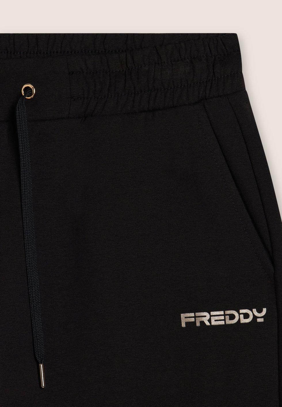 Pantaloni donna in felpa garzata elasticizzata con vestibilità regular e gamba dritta. Vita regular con elastico interno e coulisse per una regolazione comoda. Il modello è completato da tasche alla francese e piccolo logo FREDDY stampato sul fianco sinistro.