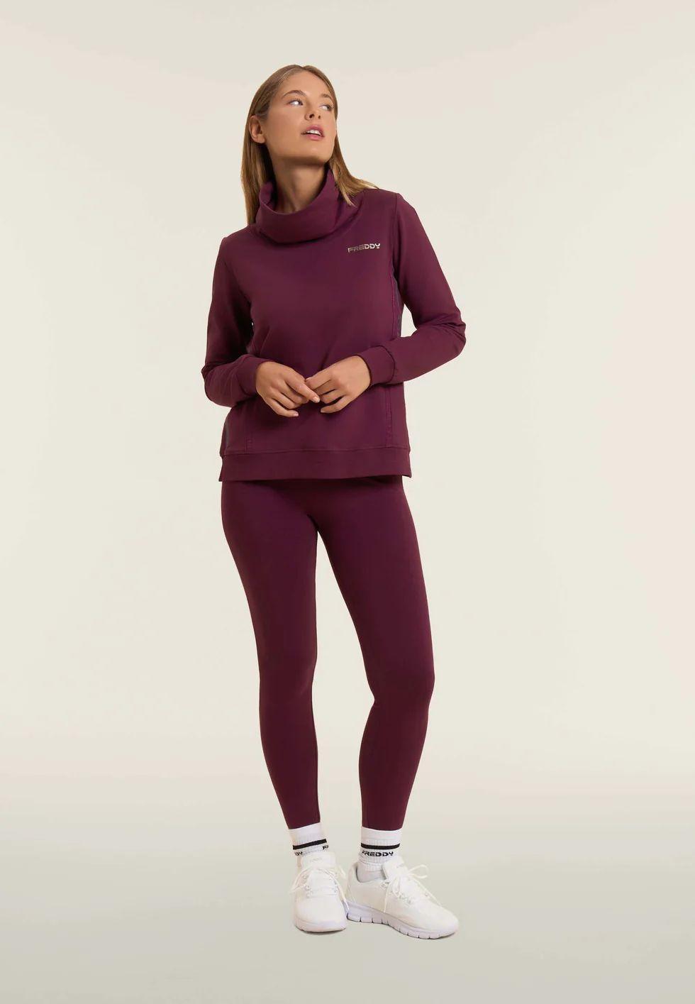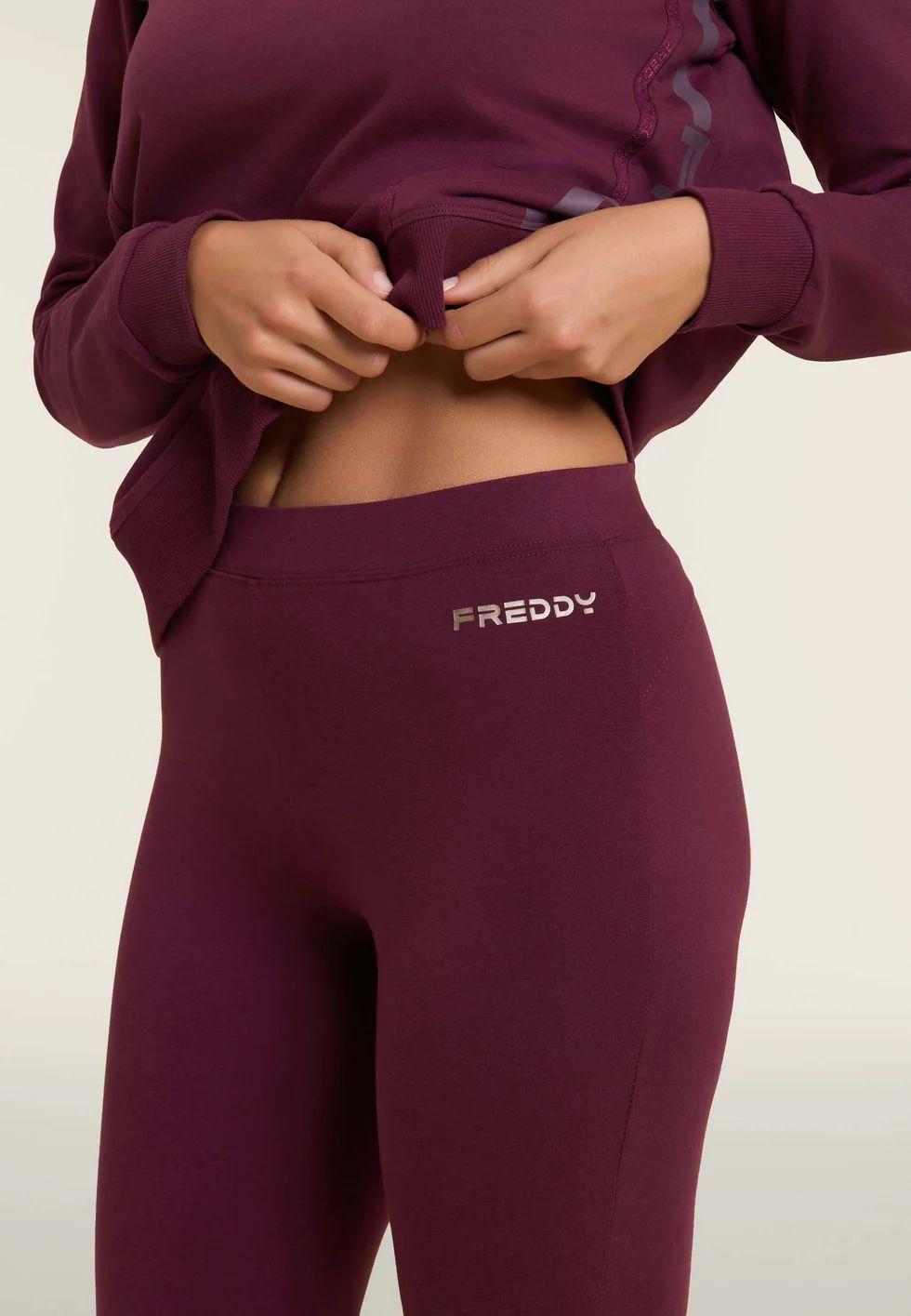 Leggings a lunghezza regular in tessuto Heavy Jersey Stretch con vestibilità aderente. La cucitura a cuore sul carré posteriore valorizza la linea del corpo. Vita regular con elastico interno e logo FREDDY stampato sul fianco sinistro. Senza tasche.