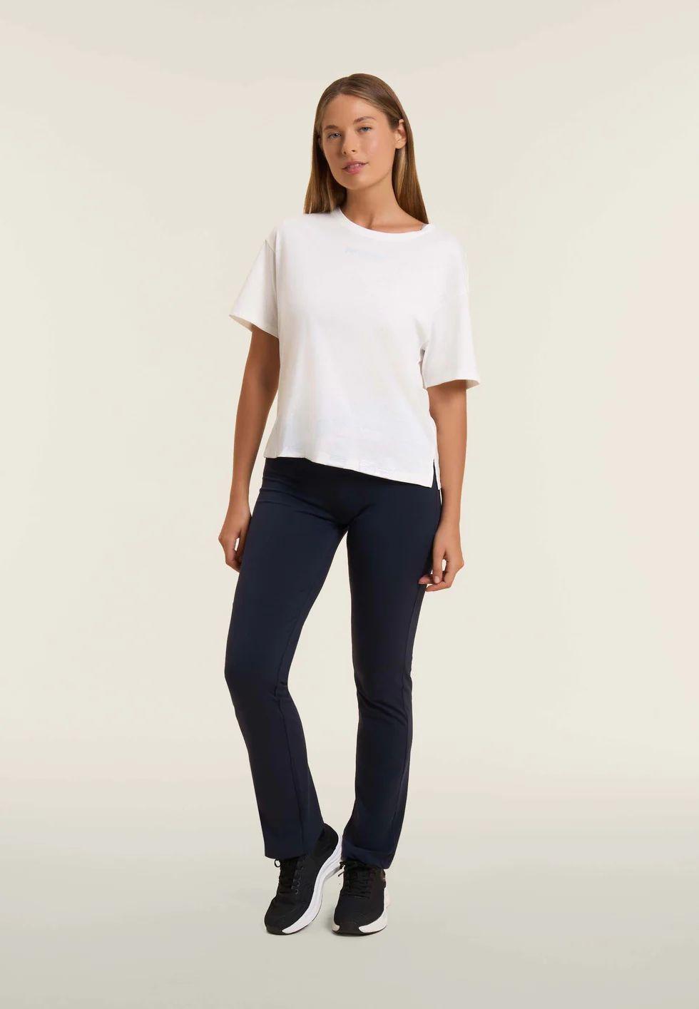 Pantaloni dalla vestibilità regular con gamba dritta e cucitura a cuore sul carré posteriore. Realizzati in Heavy Jersey Stretch con vita regular ed elastico interno. Il look è completato dal logo FREDDY stampato sul fianco sinistro. Privi di tasche.