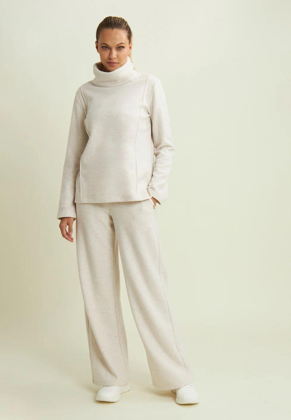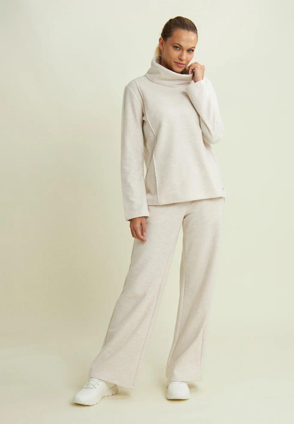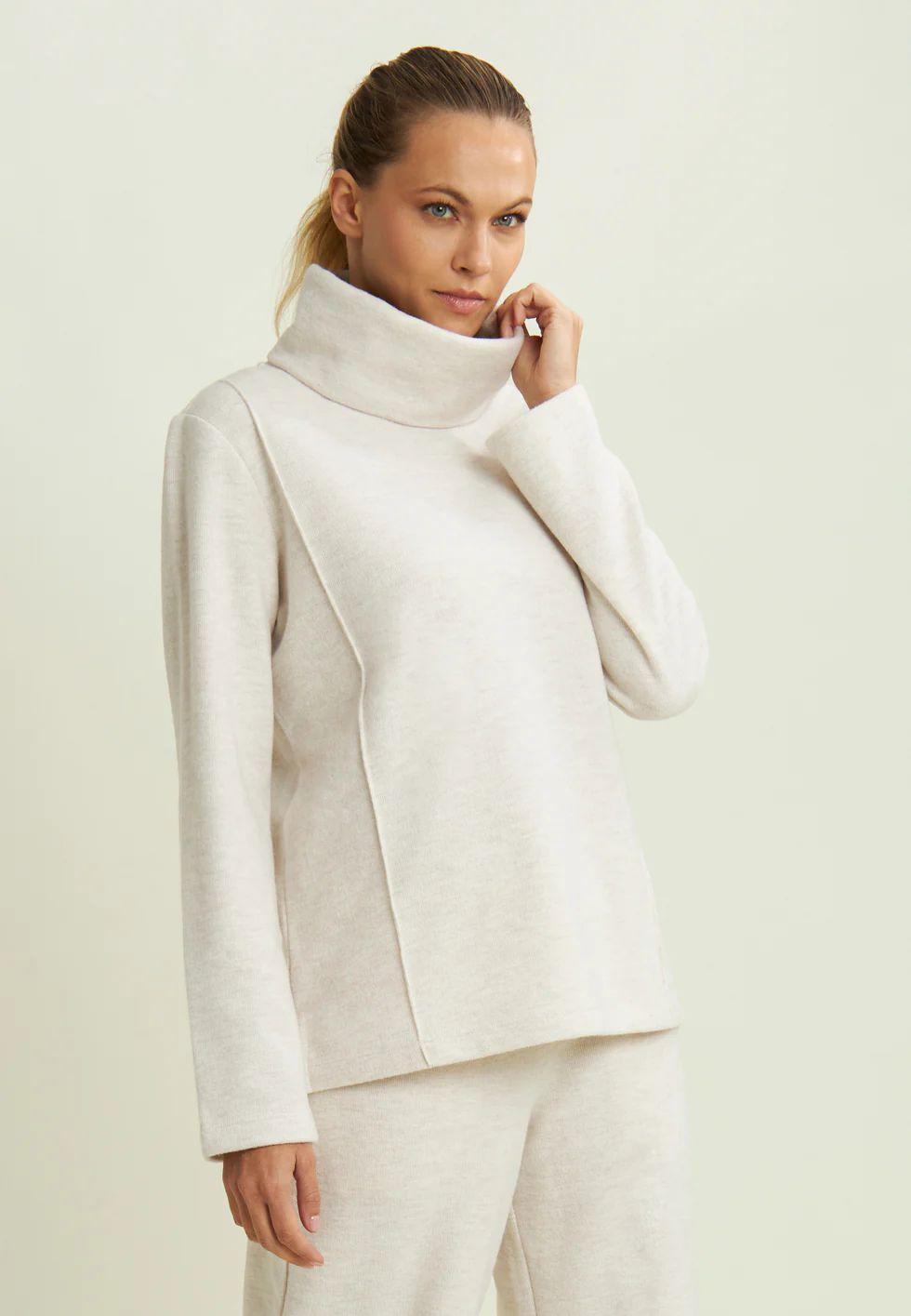 Felpa da donna dal taglio svasato e vestibilità regolare, ideale per esaltare la figura con eleganza e comfort. Realizzata in felpa garzata elasticizzata effetto tricot, offre una piacevole sensazione di calore, morbidezza e libertà di movimento. Il fondo svasato con spacchi laterali e il collo alto morbido aggiungono un tocco femminile e contemporaneo. Placchetta logo FREDDY sul fondo sinistro.