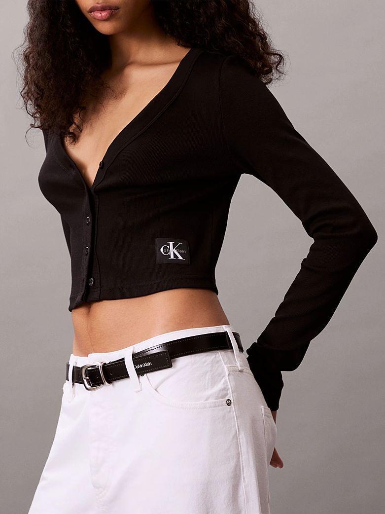 CALVIN KLEIN LV047C204G MAGLIA DONNA A LS WVN LBL 2X2 UB1 BLACK