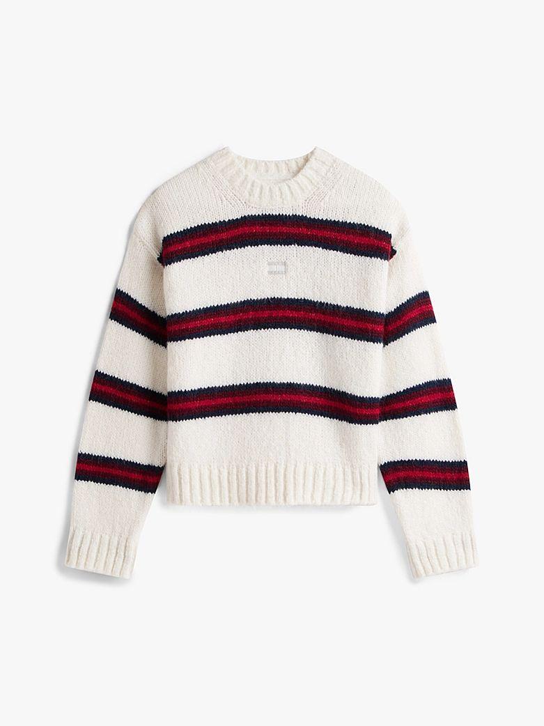 TOMMY HILFIGER DW0DW21679 MAGLIA DONNA STRIPE FLUFF YBH ANCIENT WHITE