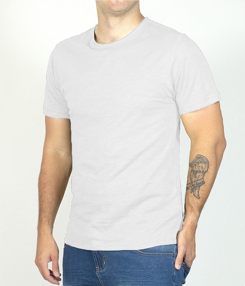 T-Shirt girocollo in tinta unitaeffetto melange. Vestibilità regolare.