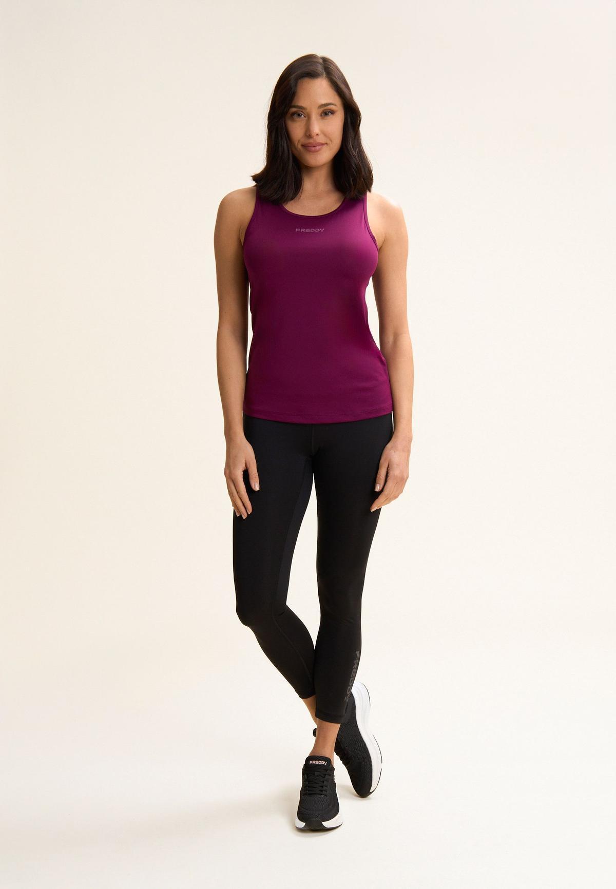 Leggings eleganti e performanti, perfetti per allenamenti intensi e tempo libero. Realizzati in tessuto tecnico traspirante D.I.W.O. con poliestere pesante elasticizzato, offrono una vestibilità aderente e un’eccellente resistenza. Il tessuto favorisce la traspirazione, mantenendo la pelle asciutta durante l’attività fisica. Il grande logo Freddy glitterato sulla gamba aggiunge un tocco glamour al tuo look, mentre il pratico taschino interno è ideale per piccoli oggetti.